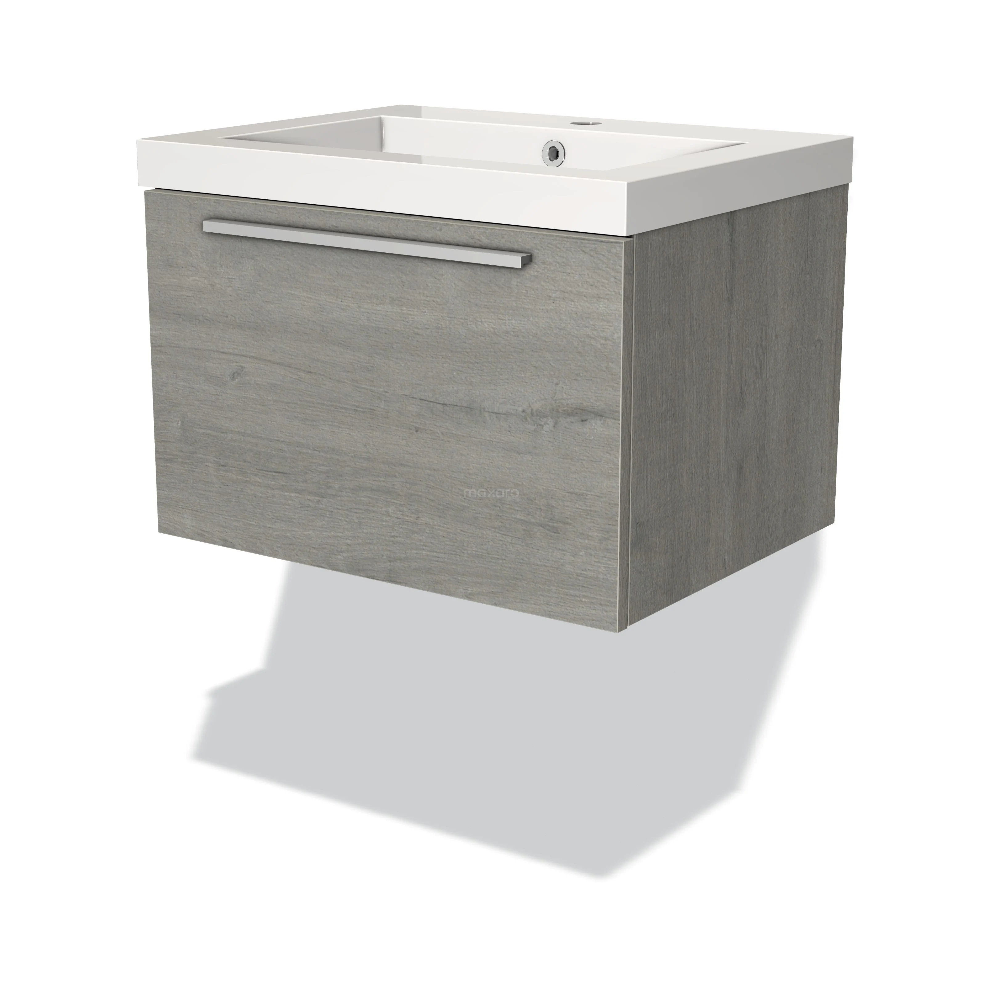 Badmöbel 60cm Modulo Graue Eiche 1 Schublade Flaches Waschbecken Mineralguss