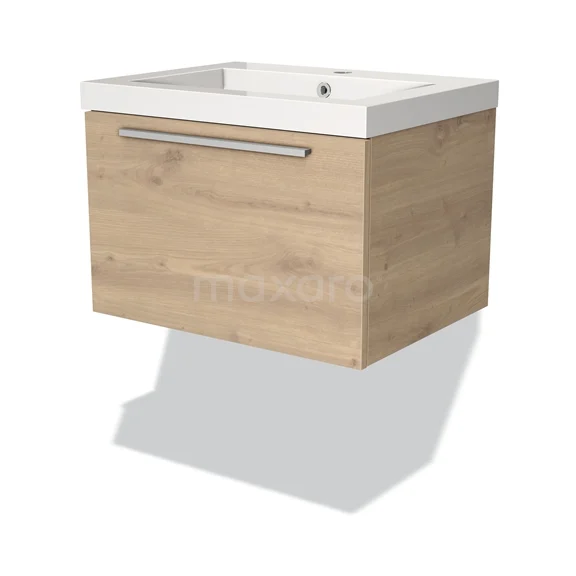 Badmöbel 60cm Modulo Hellbraune Eiche 1 Schublade Flaches Waschbecken Mineralguss