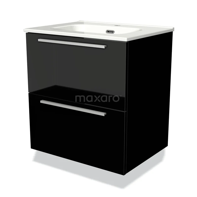 Badmöbel 60cm Modulo Hochglanz Schwarz 2 Schubladen Flaches Waschbecken Keramik