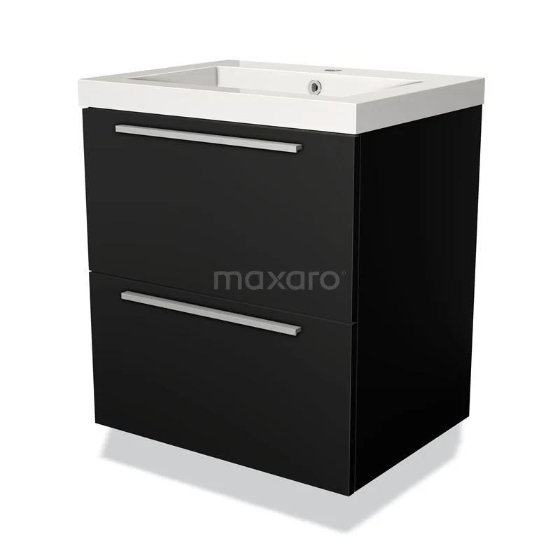 Badmöbel 60cm Modulo Matt Schwarz 2 Schubladen Flaches Waschbecken Mineralguss