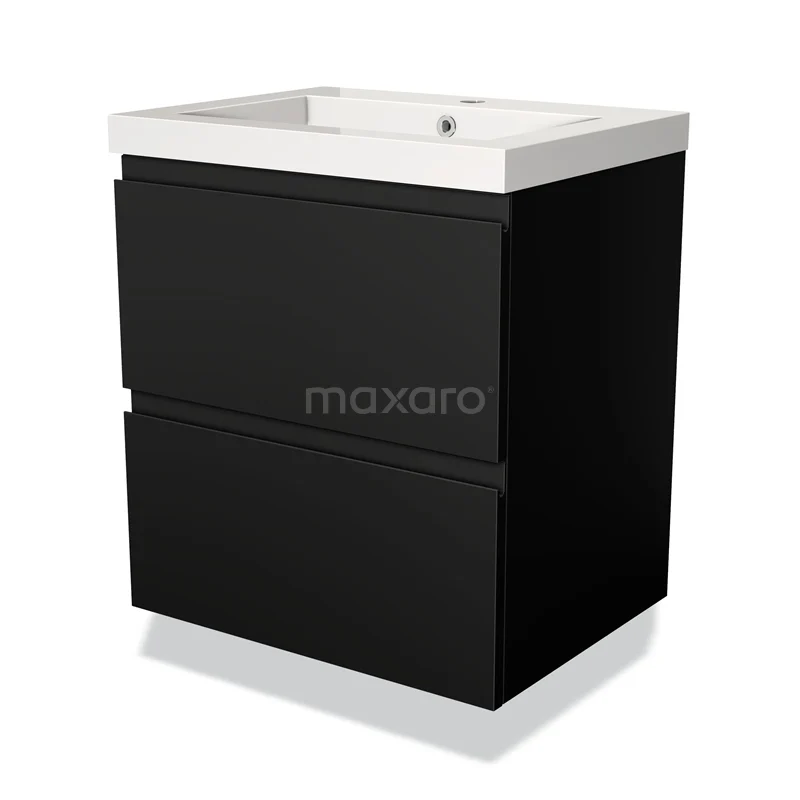 Badmöbel 60cm Modulo Matt Schwarz 2 Schubladen Griffloses Waschbecken Mineralguss