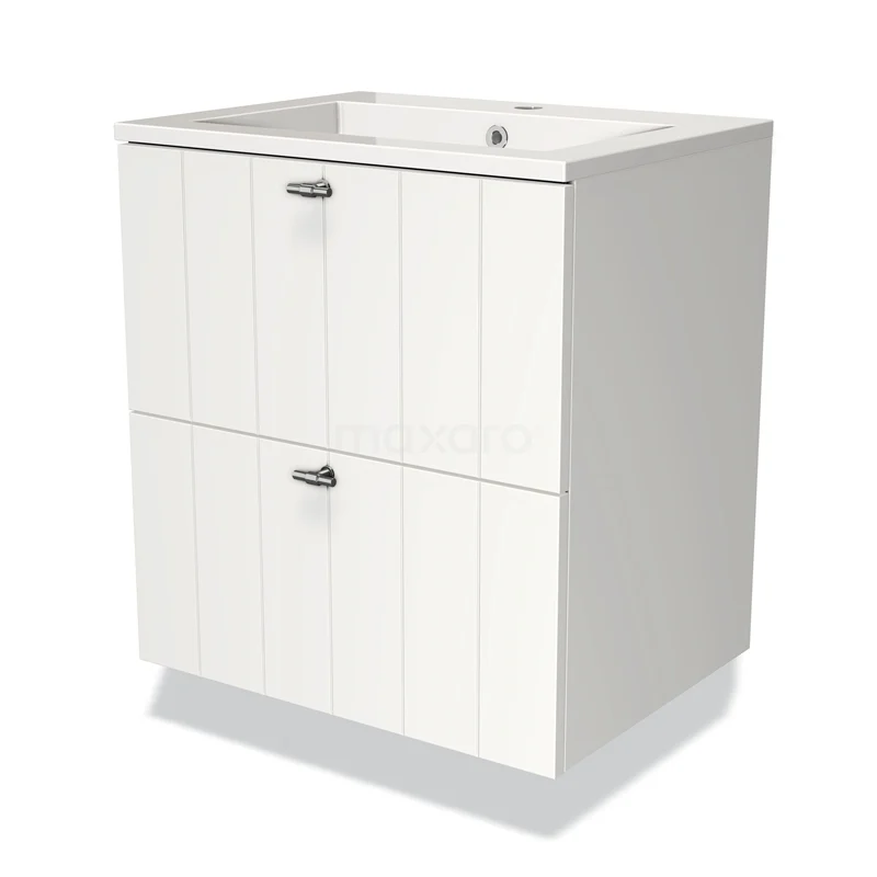 Badmöbel 60cm Modulo Matt Weiß 2 Schubladen Slat Waschbecken Mineralguss