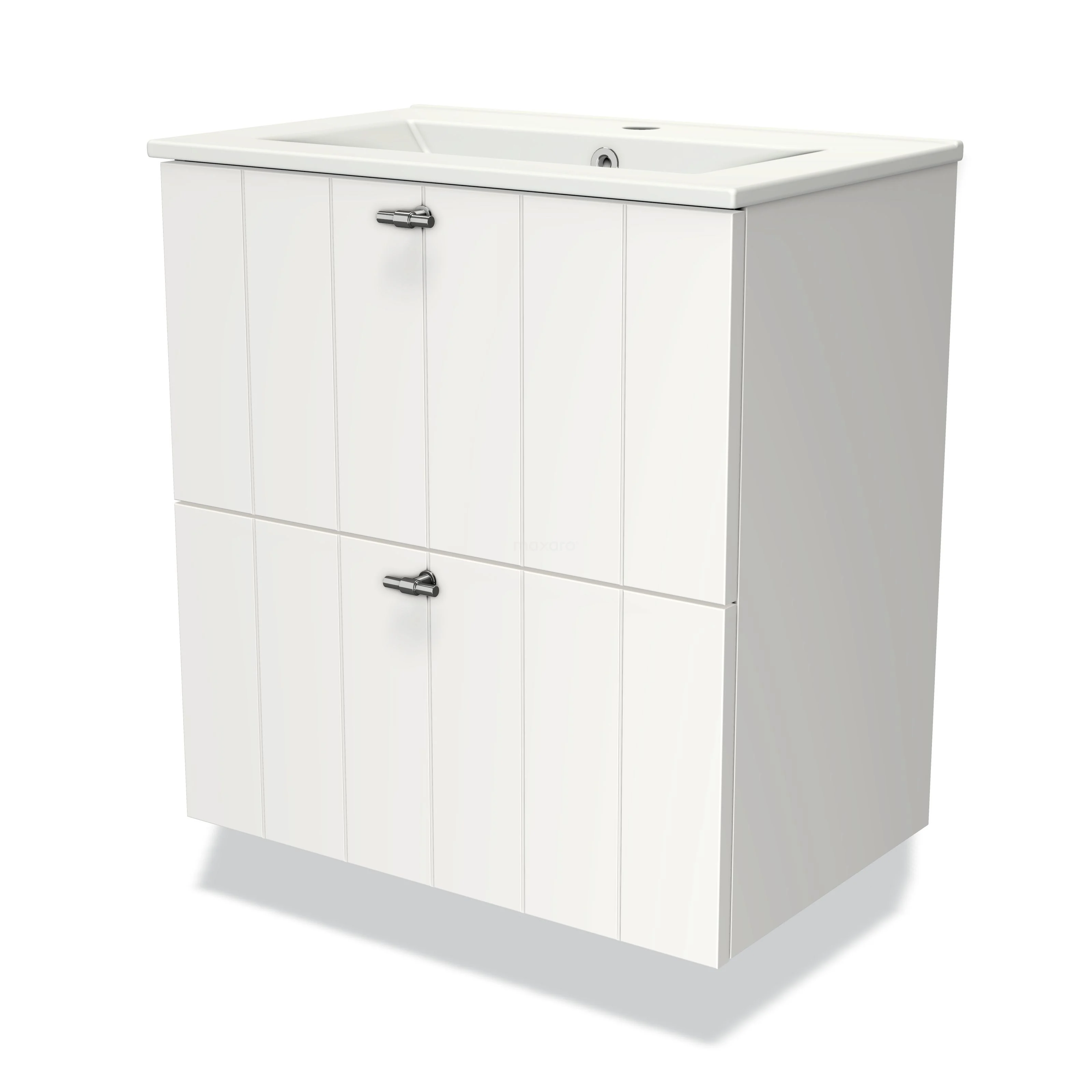 Modulo Slim Waschtische | 60 cm Matt Weiß Lamelle front Keramik 2 übereinanderliegende Schubladen