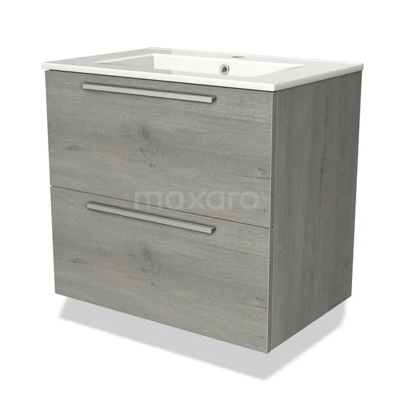 Badmöbel 70cm Modulo Graue Eiche 2 Schubladen Flaches Waschbecken Keramik