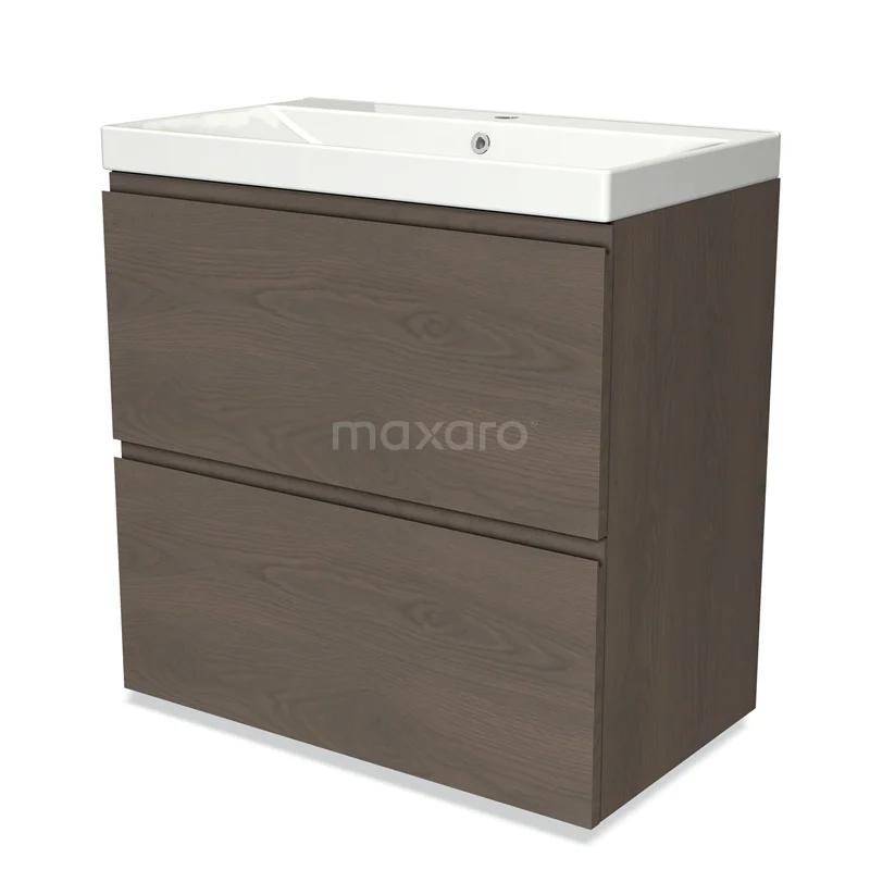 Badmöbel 80cm Modulo dunkelbraune Eiche 2 hohe Schubladen griffloses Waschbecken Keramik