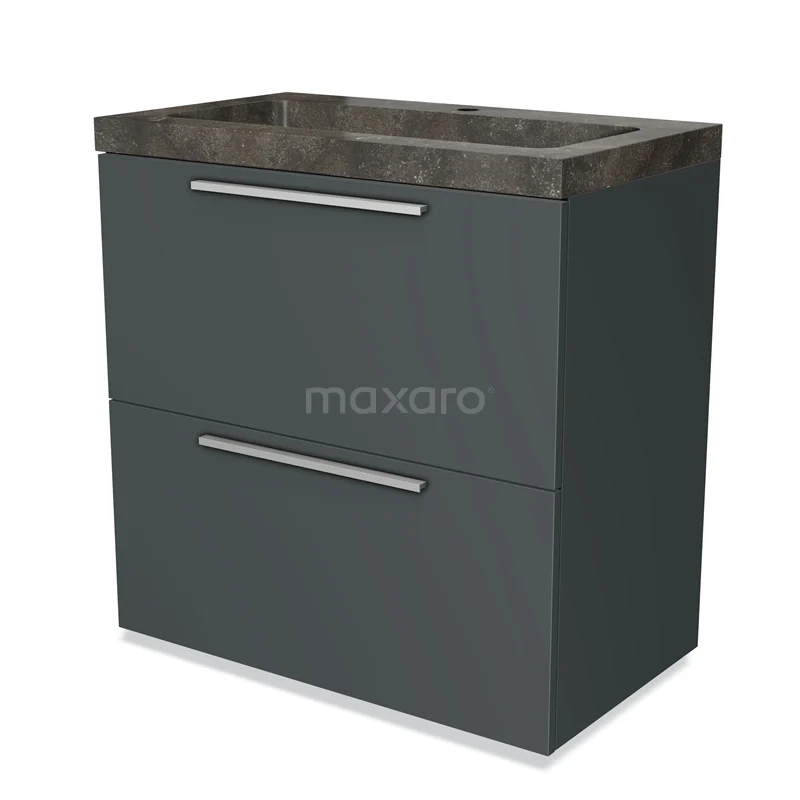 Badmöbel 80cm Modulo Dunkelgrau 2 hohe Schubladen Flaches Waschbecken Naturstein Blaustein