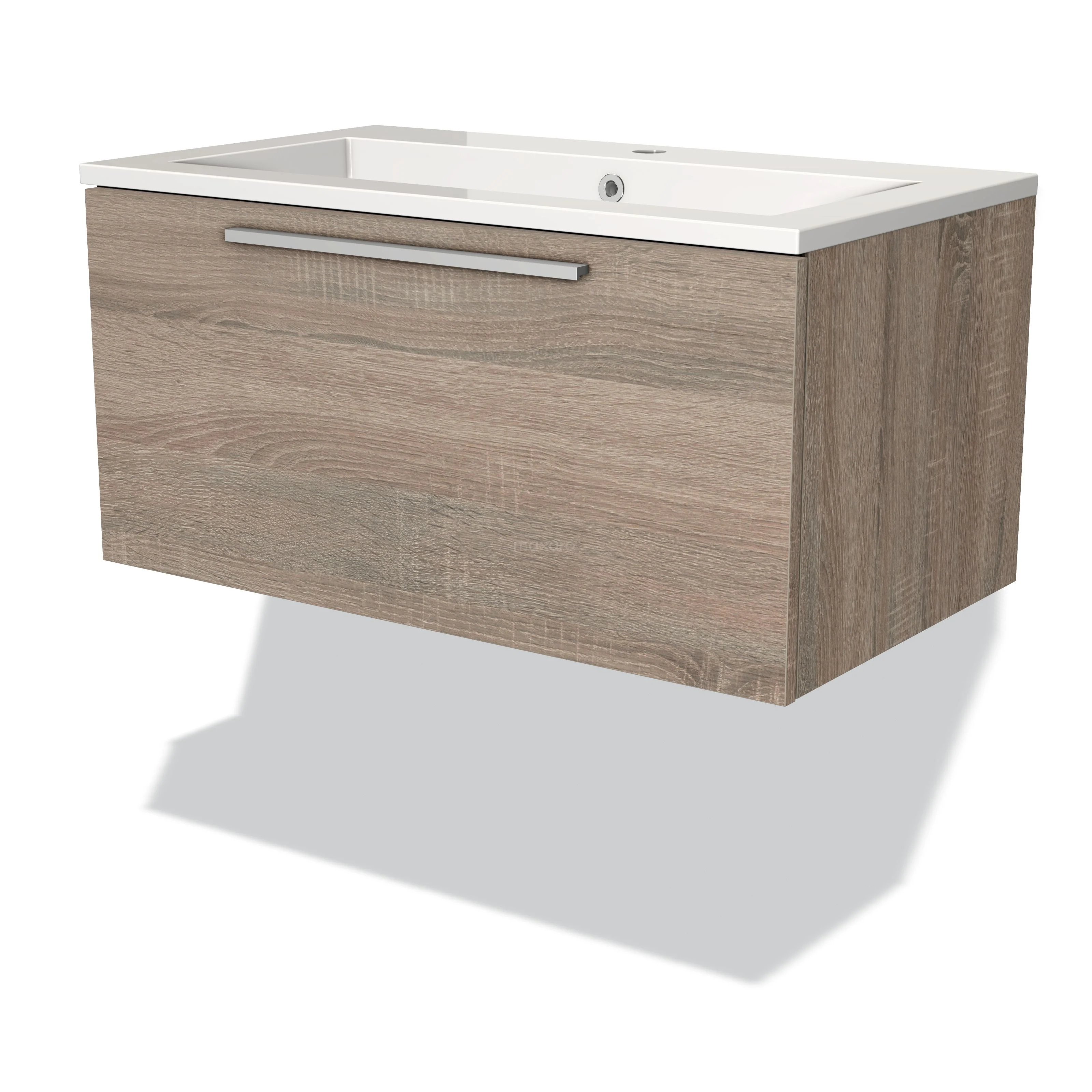 Badmöbel 80cm Modulo Eiche 1 Schublade Flaches Waschbecken Mineralguss