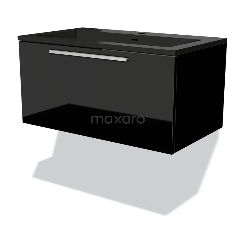 Badmöbel 80cm Modulo Hochglanz Schwarz 1 Schublade Flaches Waschbecken Quarz