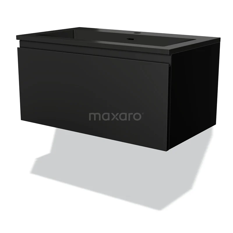 Stilvolles Design Das stilvolle Design macht diesen Badmöbel zum Blickfang in Ihrem Badezimmer. Der Unterschrank verfügt über eine grifflose Front und hat eine matte Oberfläche in Schwarz. Diese Farbe bietet eine schöne Grundlage für eine industrielle Einrichtung und ist ideal, um einen Kontrast im Raum zu schaffen. Außerdem sorgt die grifflose Front für einen eleganten Touch.