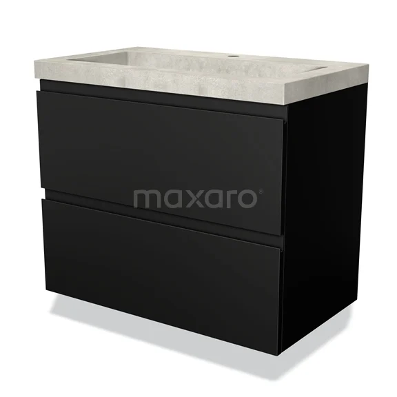 Badmöbel 80cm Modulo Matt Schwarz 2 Schubladen Griffloses Waschbecken Beton Greige