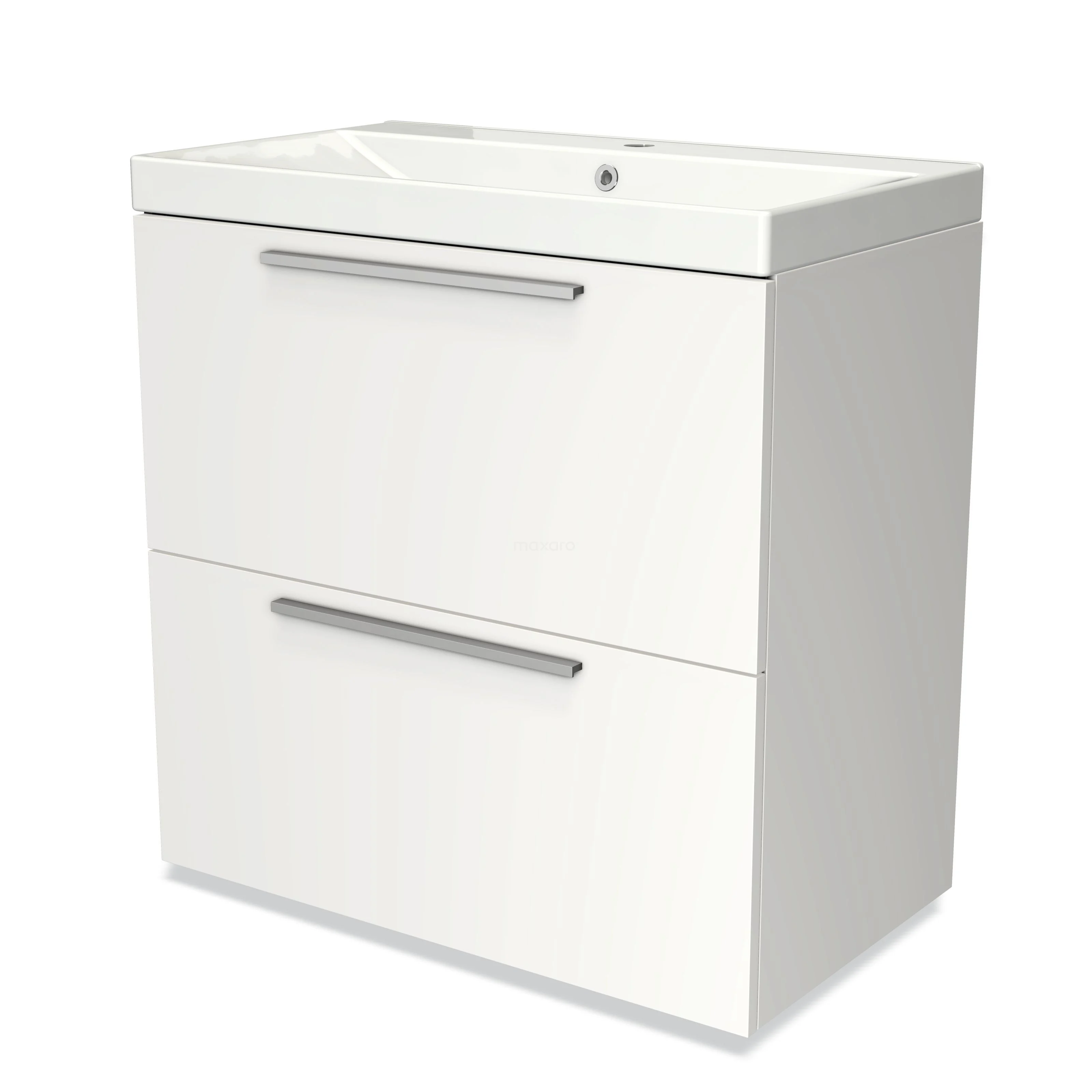 Badmöbel 80cm Modulo Matt Weiß 2 hohe Schubladen Flaches Waschbecken Keramik