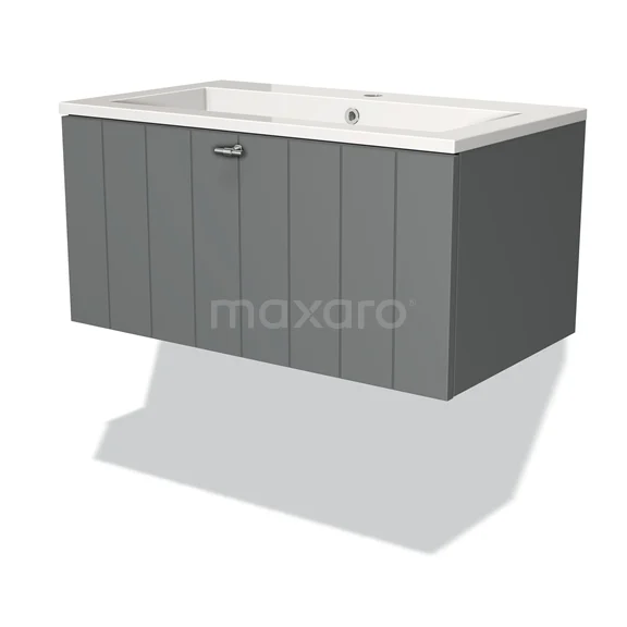 Badmöbel 80cm Modulo Mittelgrau 1 Schubladen-Lamellen-Waschbecken Mineralguss