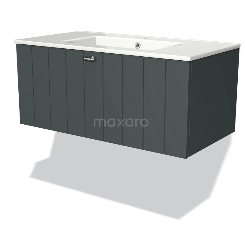 Badmöbel 90cm Modulo Dunkelgrau 1 Schubladen-Lamellen-Waschbecken aus Keramik