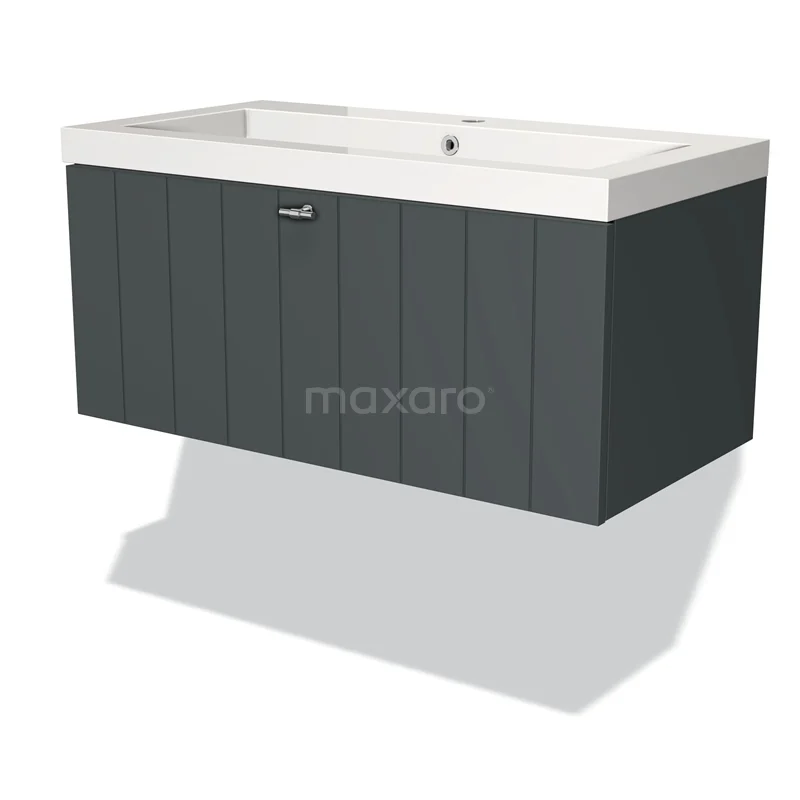 Badmöbel 90cm Modulo Dunkelgrau 1 Schubladen Lamellenwaschbecken Mineralguss