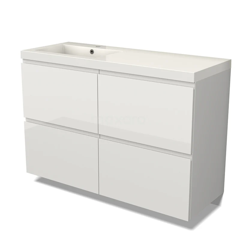 Modulo Waschtische | 120 cm Hochglanz Weiß Grifflos front Mineralguss 4 hohe Schubladen