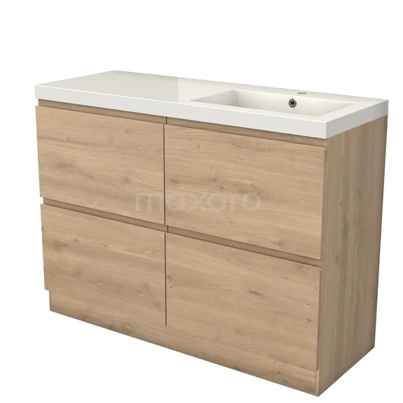 Das bodenstehende Badmöbel (120 cm) ist das Herzstück für die tägliche Körperpflege wie Schminken, Rasieren oder Zähneputzen. Das Waschbecken hat 2 Hahnlöcher und ist ideal für die gleichzeitige Nutzung durch mehrere Personen. Das Möbel bietet außerdem genügend Platz, um Ihre WC- und Pflegeprodukte ordentlich zu verstauen.