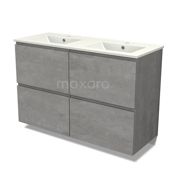Modulo Waschtische | 120 cm Hellgrauer Beton Grifflos front Keramik 4 hohe Schubladen