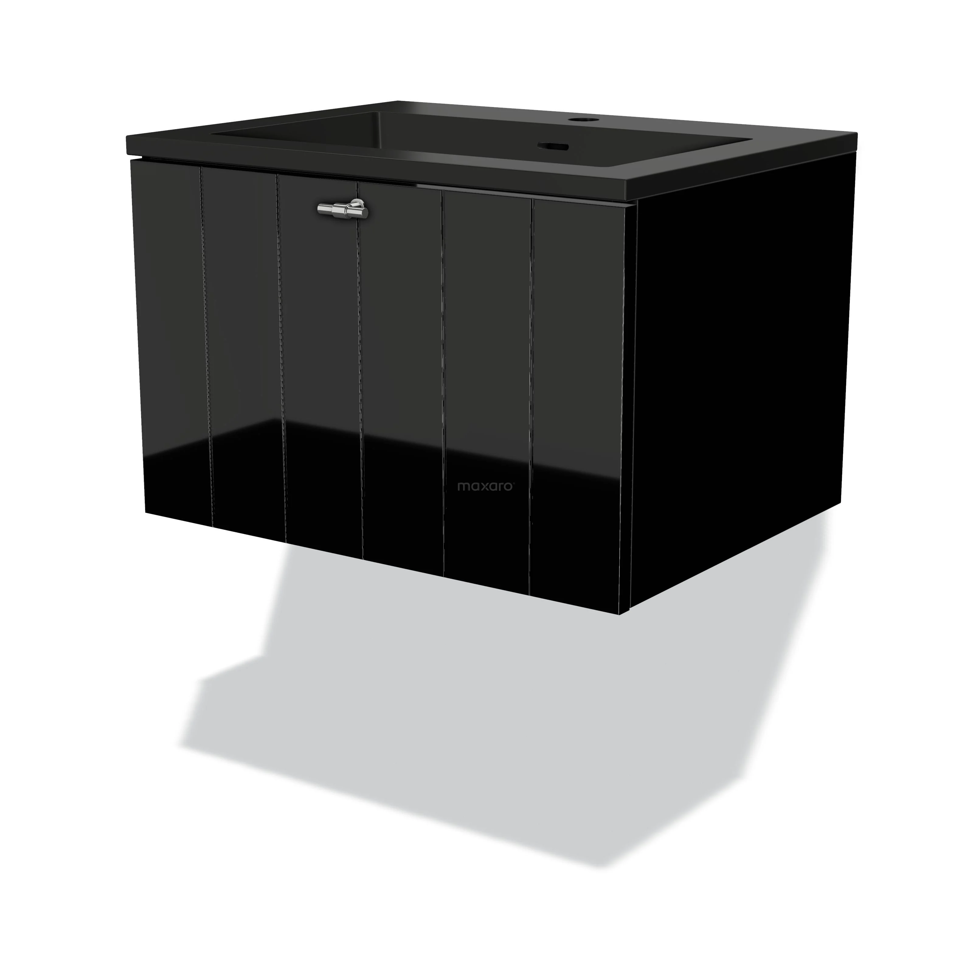 Hochglanz-Badmöbel 60cm Modulo Schwarz 1 Schubladen-Lamellen-Waschbecken Quarz