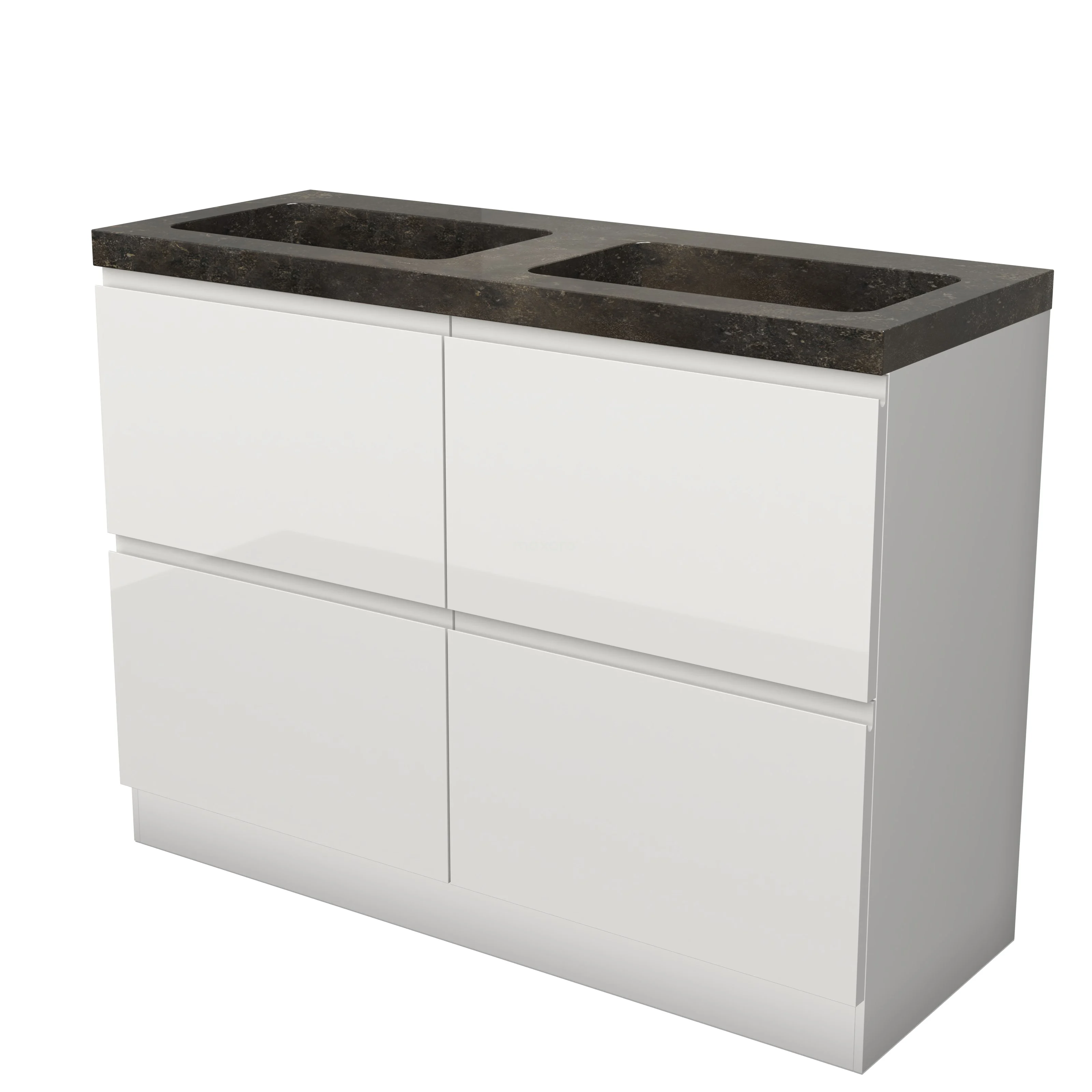 Modulo Waschtische | 120 cm Hochglanz Weiß Grifflos front Naturstein 4 hohe Schubladen stehend