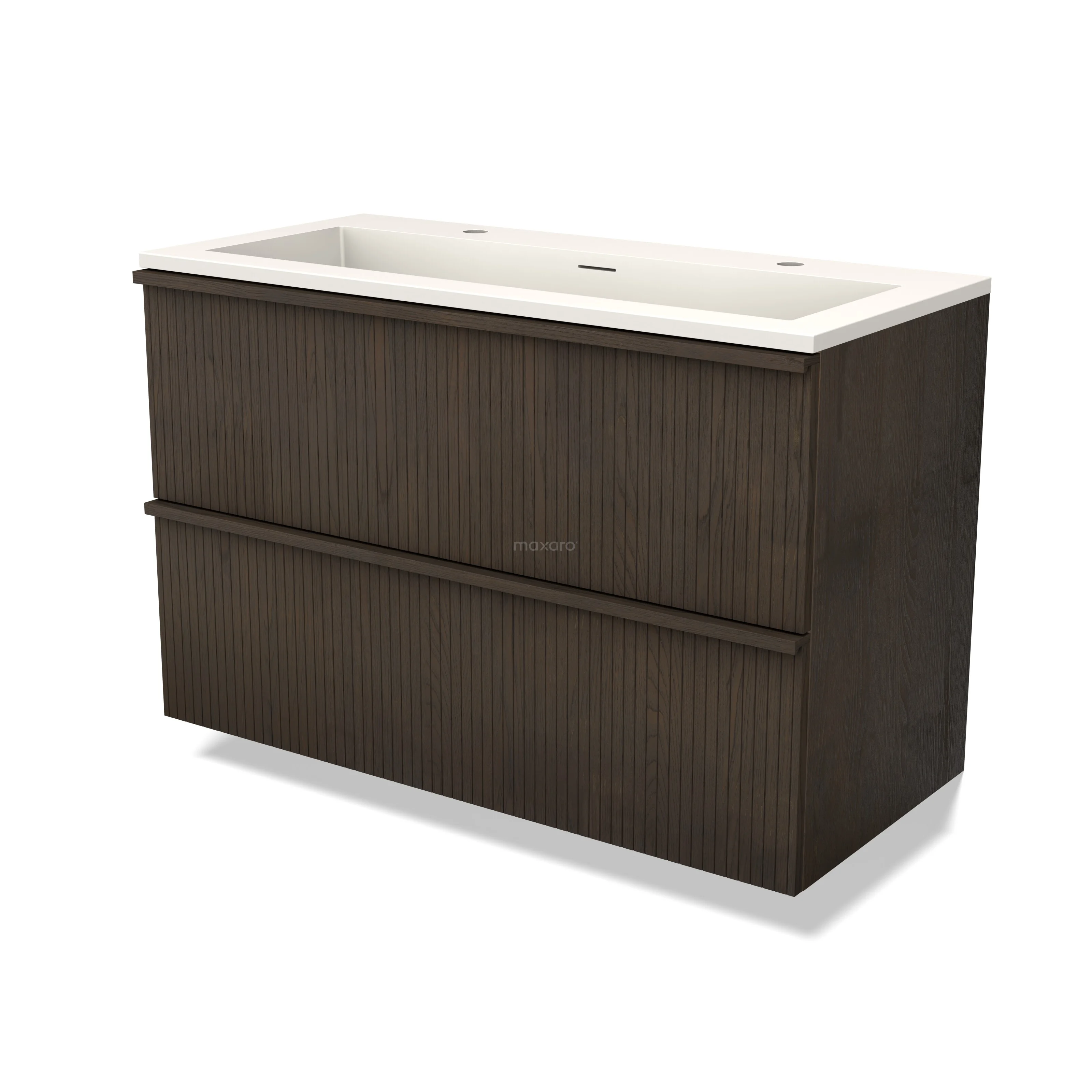 Modulo Plus Waschtische | 100 cm Espresso Eiche Riffel front Solid Surface 2 übereinanderliegende Schubladen