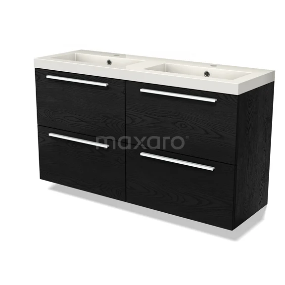 Modulo Slim Waschtische | 120 cm Schwarze Eiche Flach front Mineralguss 4 Schubladen