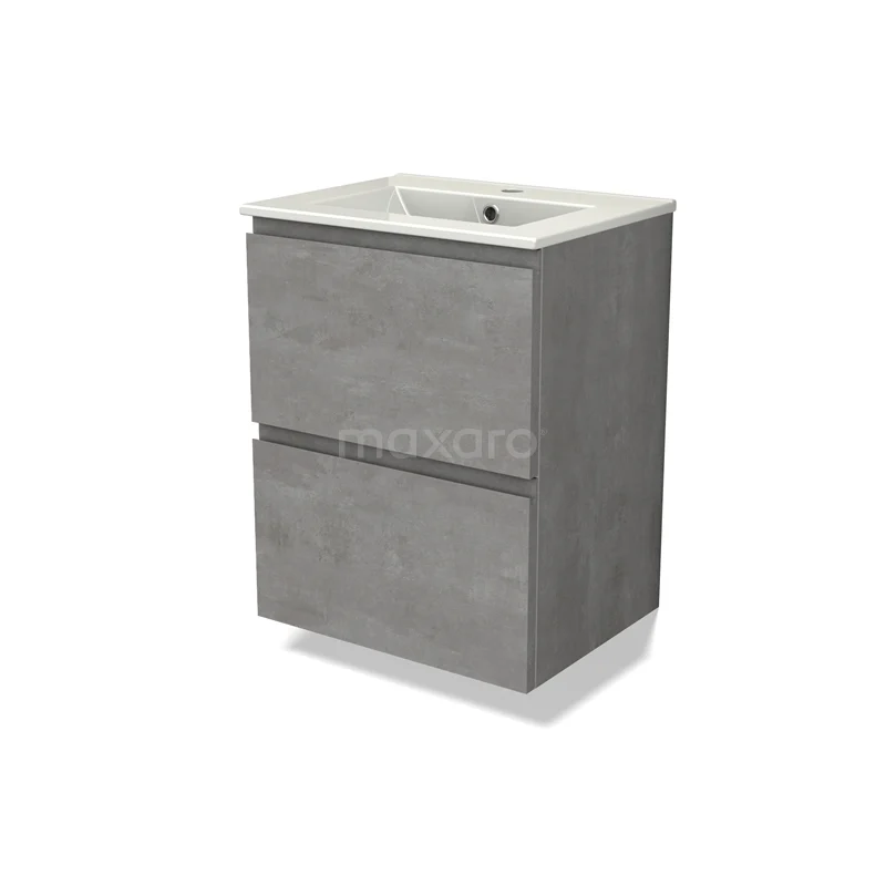 Modulo Slim Waschtische | 50 cm Hellgrauer Beton Grifflos front Keramik 2 übereinanderliegende Schubladen