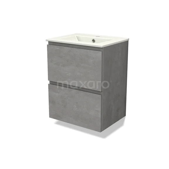 Modulo Slim Waschtische | 50 cm Hellgrauer Beton Grifflos front Keramik 2 übereinanderliegende Schubladen