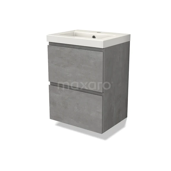 Modulo Slim Waschtische | 50 cm Hellgrauer Beton Grifflos front Mineralguss 2 übereinanderliegende Schubladen