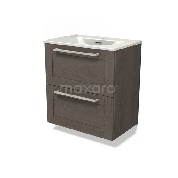 Modulo Slim Waschtische | 60 cm Dunkelbraune Eiche Rahmen front Keramik 2 übereinanderliegende Schubladen