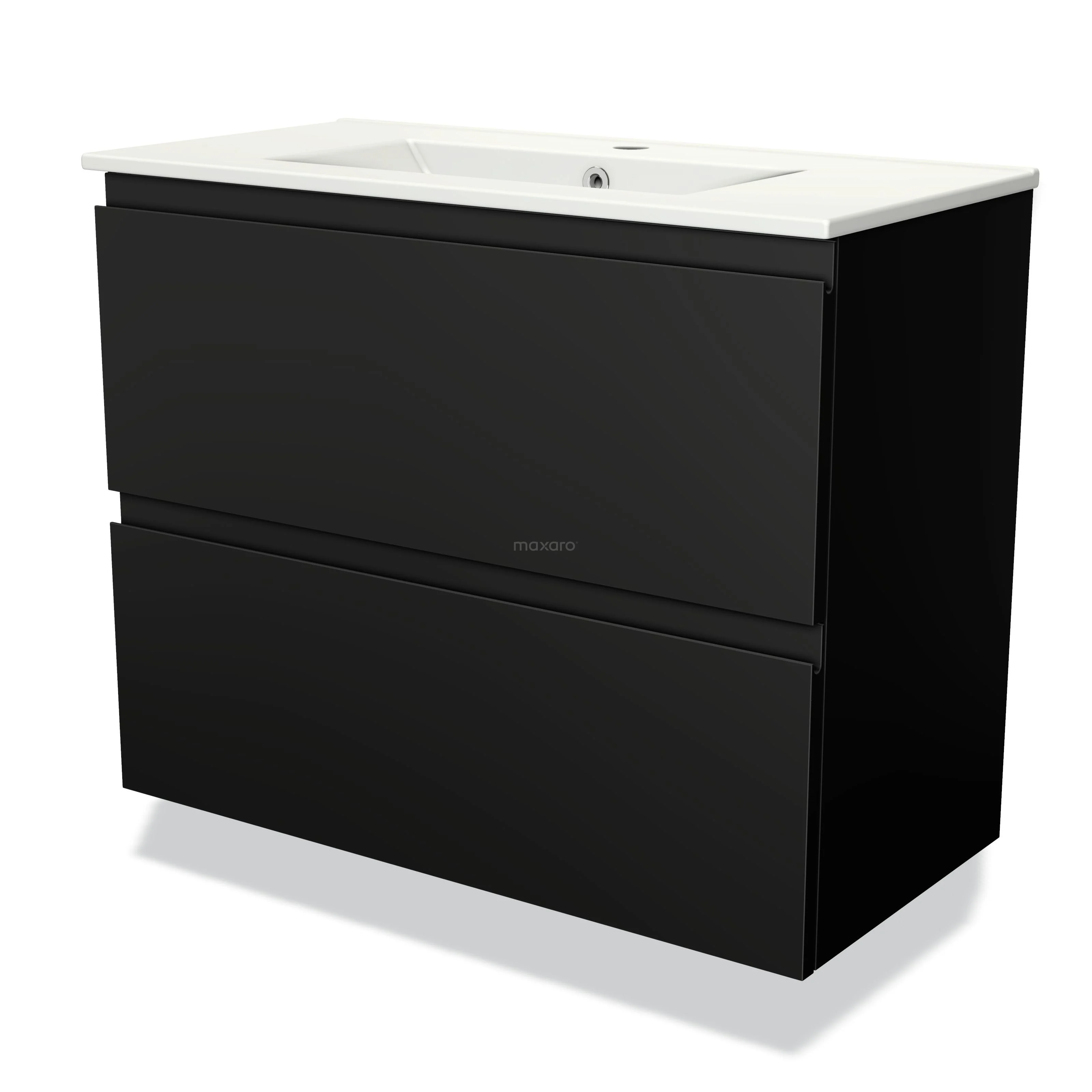 Modulo Slim Waschtische | 80 cm Matt Schwarz Grifflos front Keramik 2 übereinanderliegende Schubladen