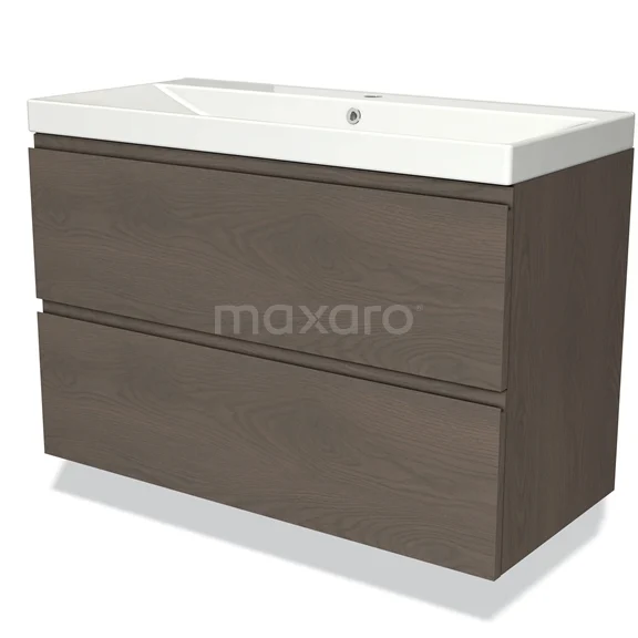 Modulo Waschtische | 100 cm Dunkelbraune Eiche Grifflos front Keramik 2 übereinanderliegende Schubladen
