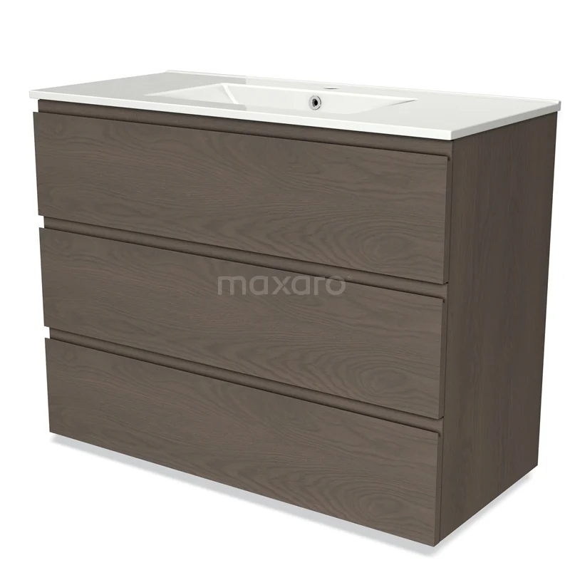 Modulo Waschtische | 100 cm Dunkelbraune Eiche Grifflos front Keramik 3 Schubladen