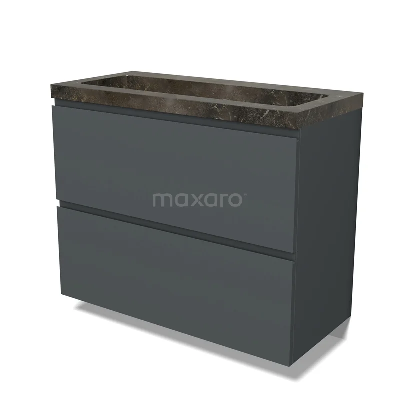 Modulo Waschtische | 100 cm Dunkelgrau Grifflos front Naturstein 2 hohe Schubladen übereinanderliegend