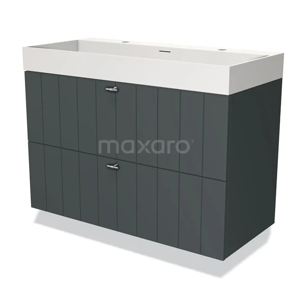 Modulo Waschtische | 100 cm Dunkelgrau Lamelle front Solid Surface 2 übereinanderliegende Schubladen