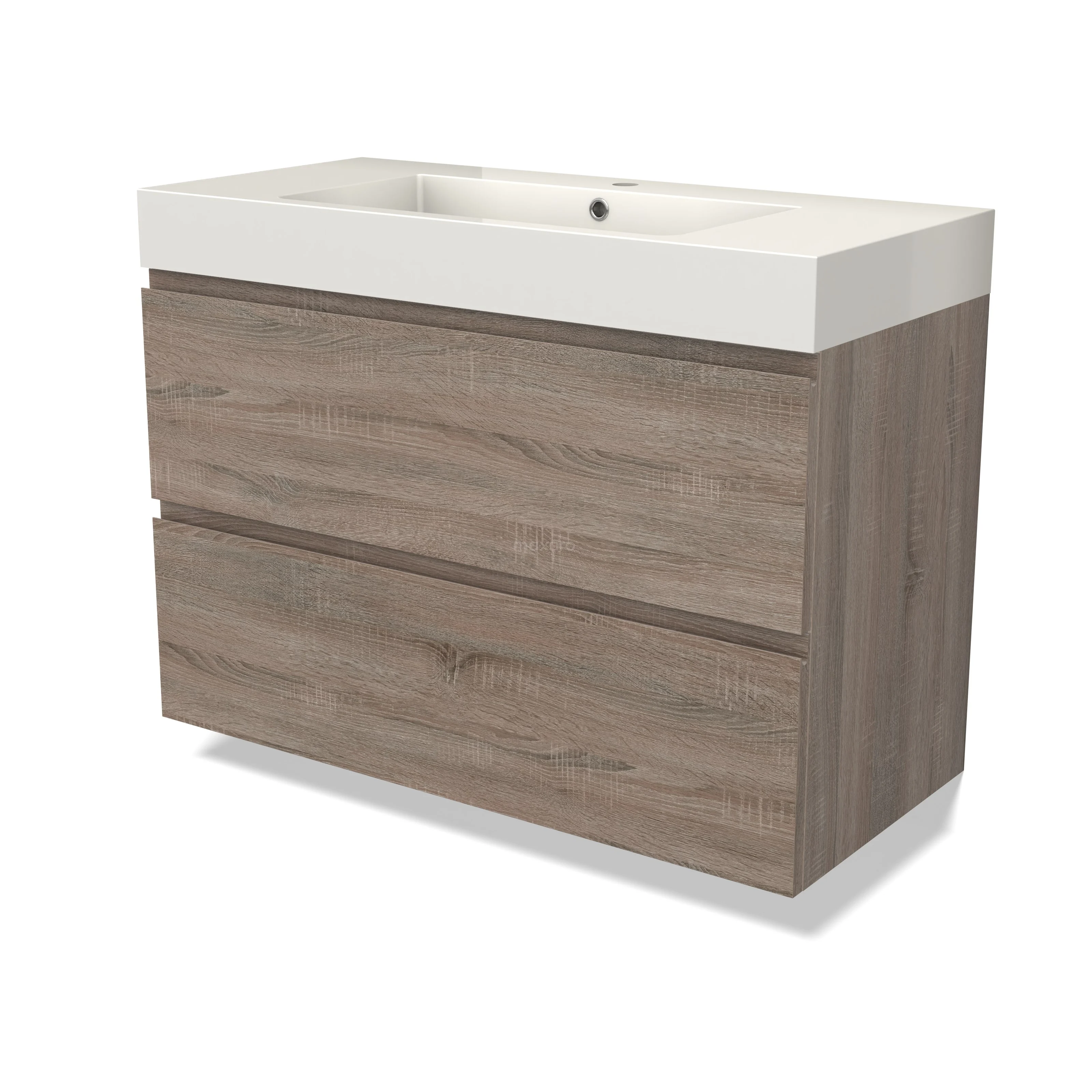 Modulo Waschtische | 100 cm Eiche Grifflos front Mineralguss 2 übereinanderliegende Schubladen