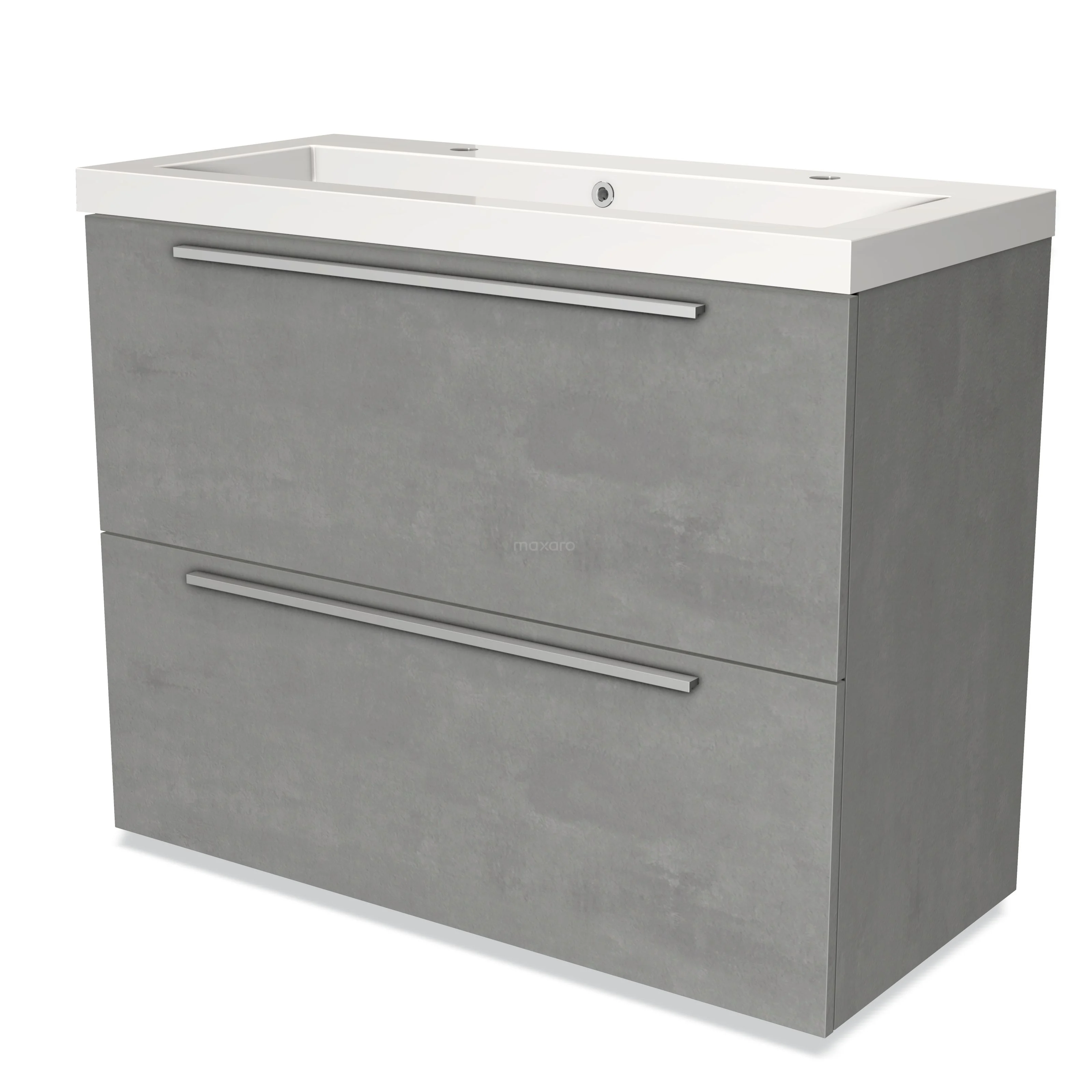 Modulo Waschtische | 100 cm Hellgrauer Beton Flach front Mineralguss 2 hohe Schubladen übereinanderliegend