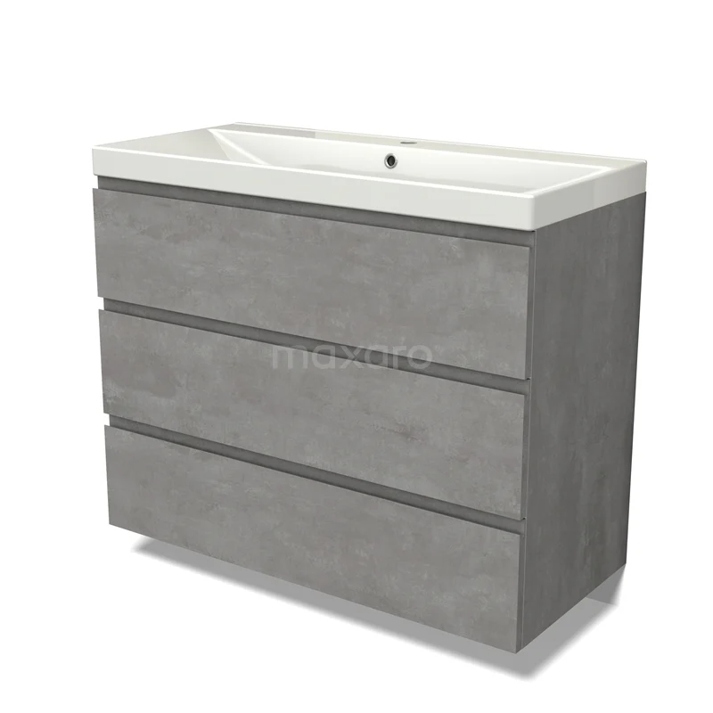 Modulo Waschtische | 100 cm Hellgrauer Beton Grifflos front Keramik 3 Schubladen