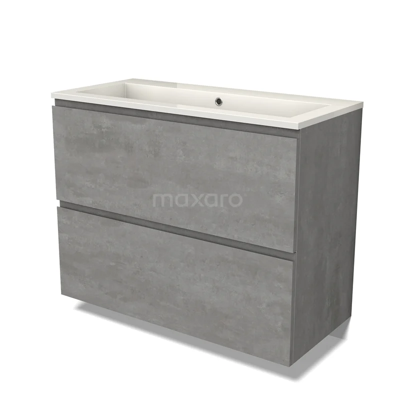Modulo Waschtische | 100 cm Hellgrauer Beton Grifflos front Mineralguss 2 hohe Schubladen übereinanderliegend