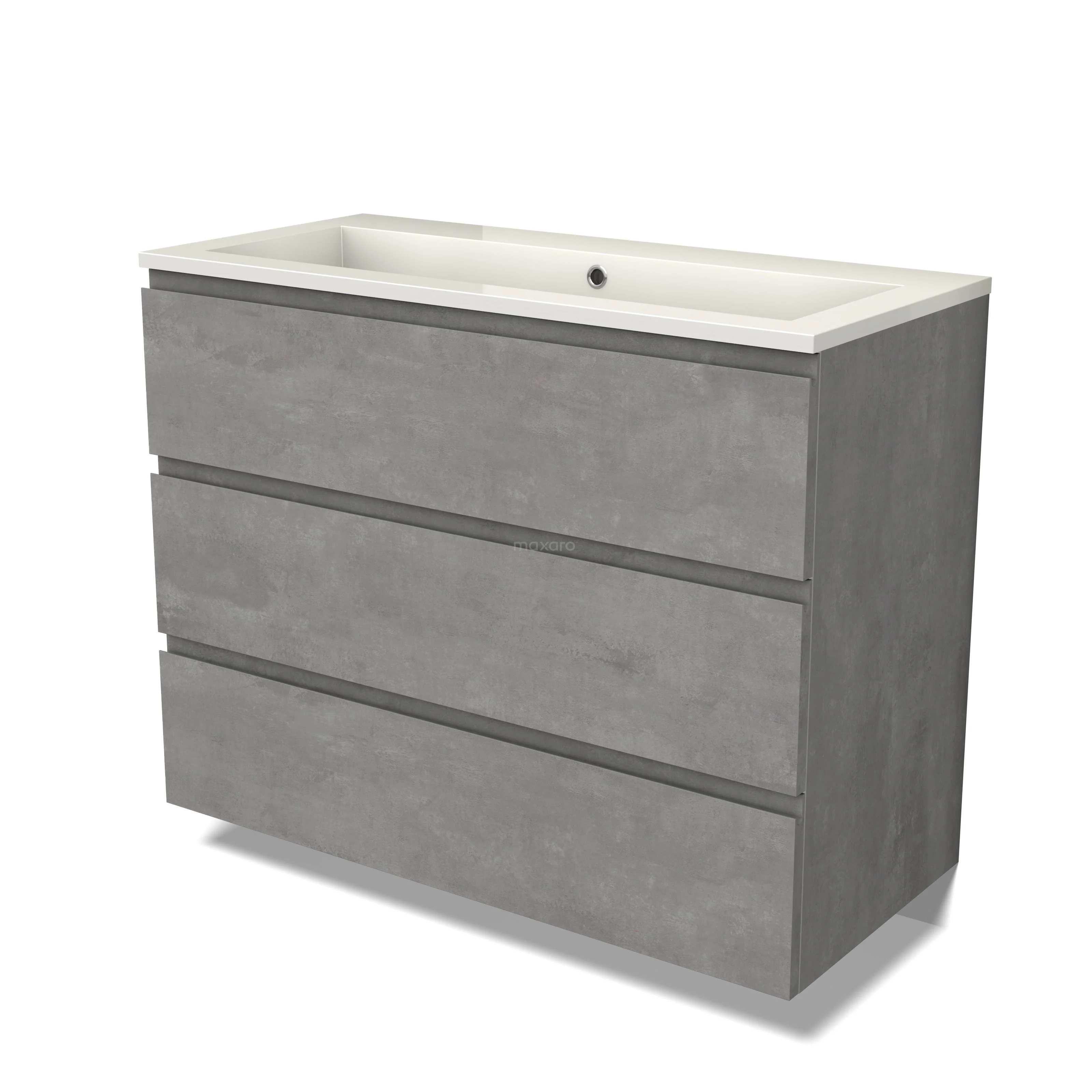 Modulo Waschtische | 100 cm Hellgrauer Beton Grifflos front Mineralguss 3 Schubladen