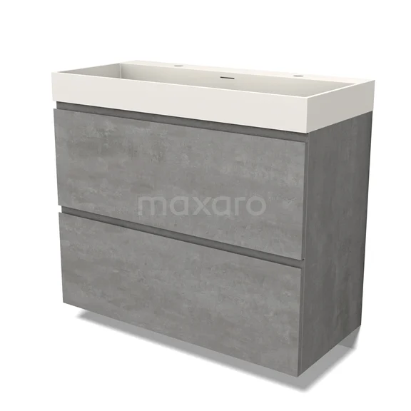 Modulo Waschtische | 100 cm Hellgrauer Beton Grifflos front Solid Surface 2 hohe Schubladen übereinanderliegend