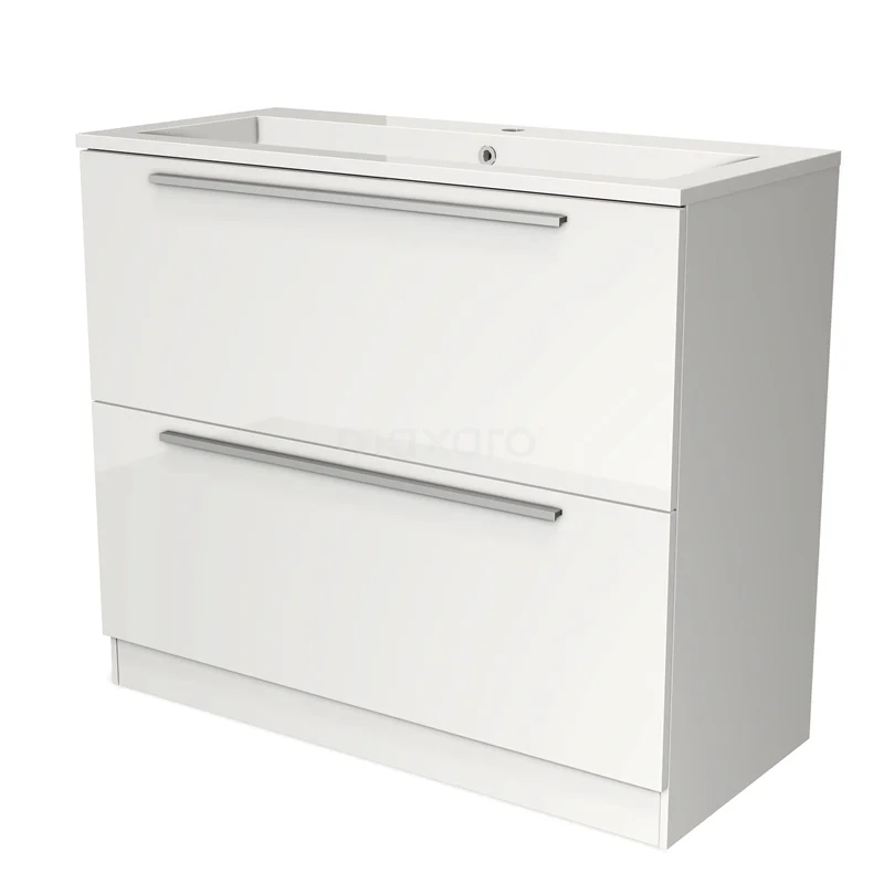 Modulo Waschtische | 100 cm Hochglanz Weiß Flach front Mineralguss 2 hohe Schubladen übereinanderliegend