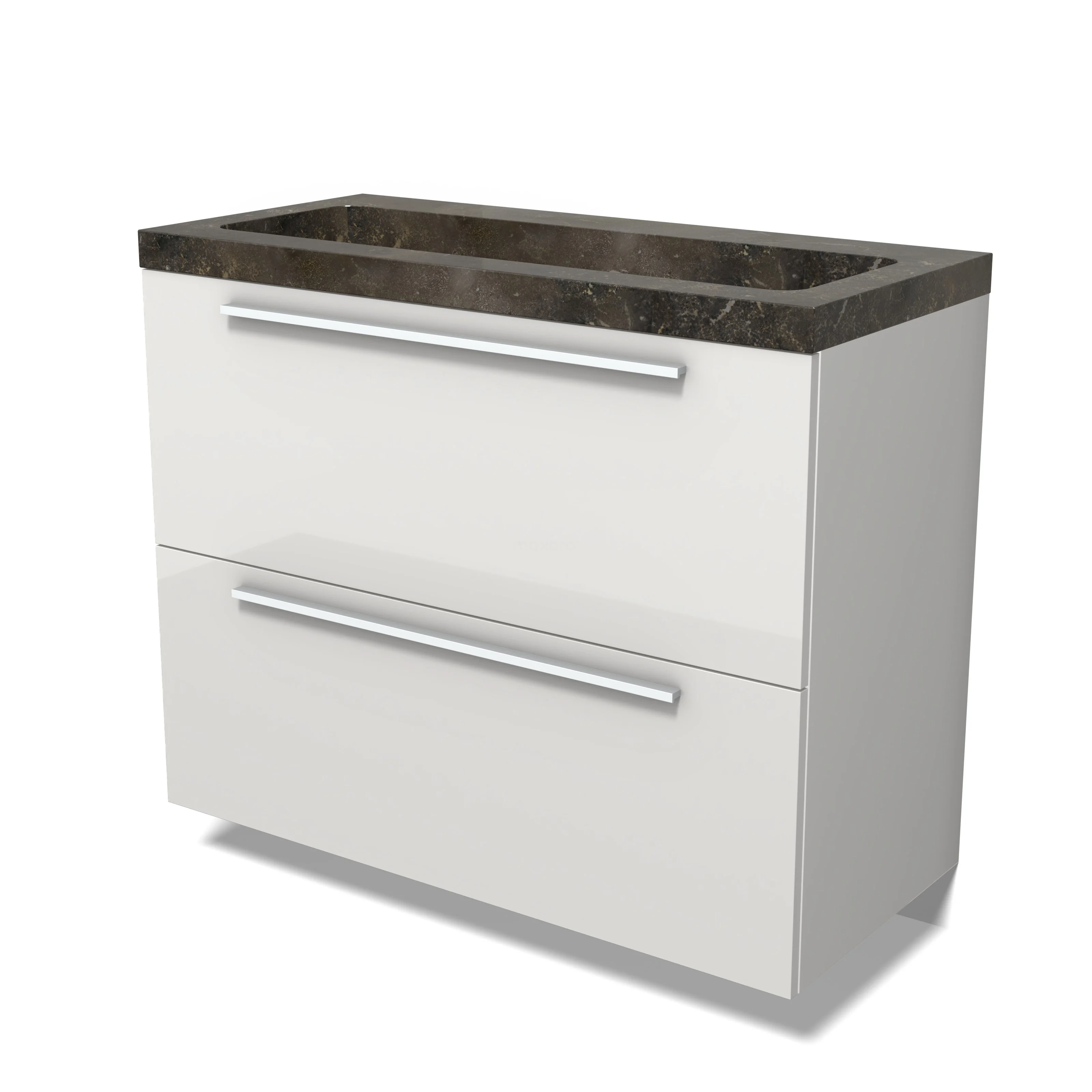 Modulo Waschtische | 100 cm Hochglanz Weiß Flach front Naturstein 2 hohe Schubladen übereinanderliegend