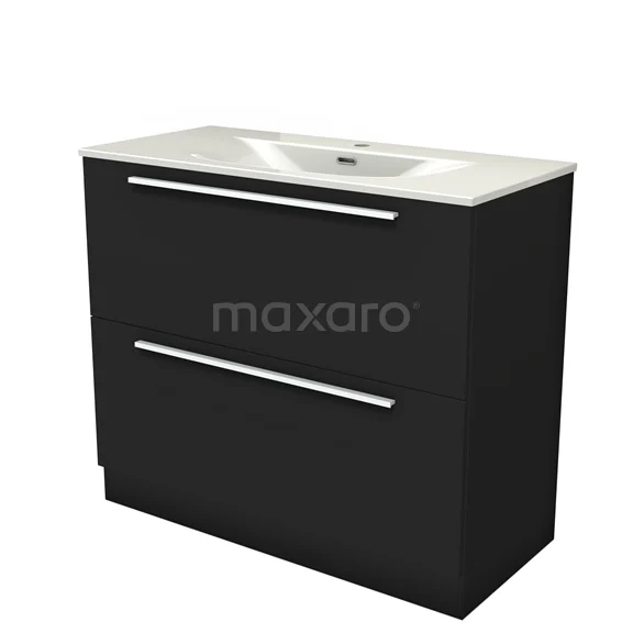 Modulo Waschtische | 100 cm Matt Schwarz Flach front Keramik 2 hohe Schubladen übereinanderliegend