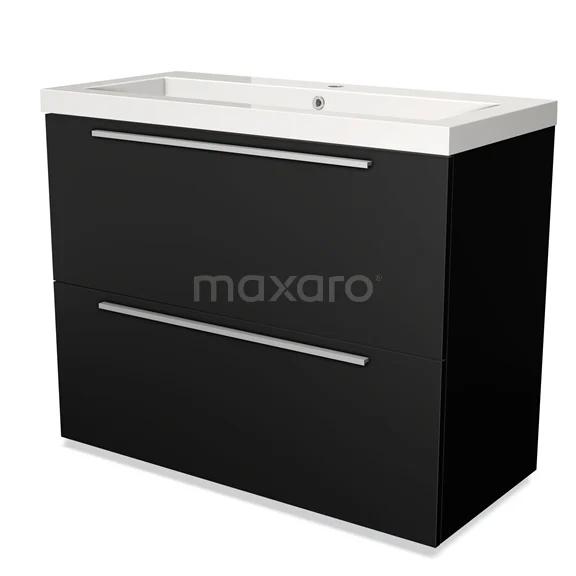 Modulo Waschtische | 100 cm Matt Schwarz Flach front Mineralguss 2 hohe Schubladen übereinanderliegend
