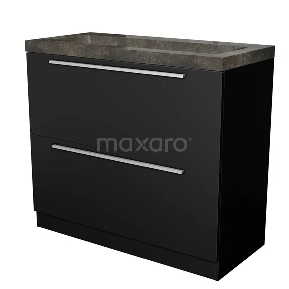 Modulo Waschtische | 100 cm Matt Schwarz Flach front Naturstein 2 hohe Schubladen übereinanderliegend