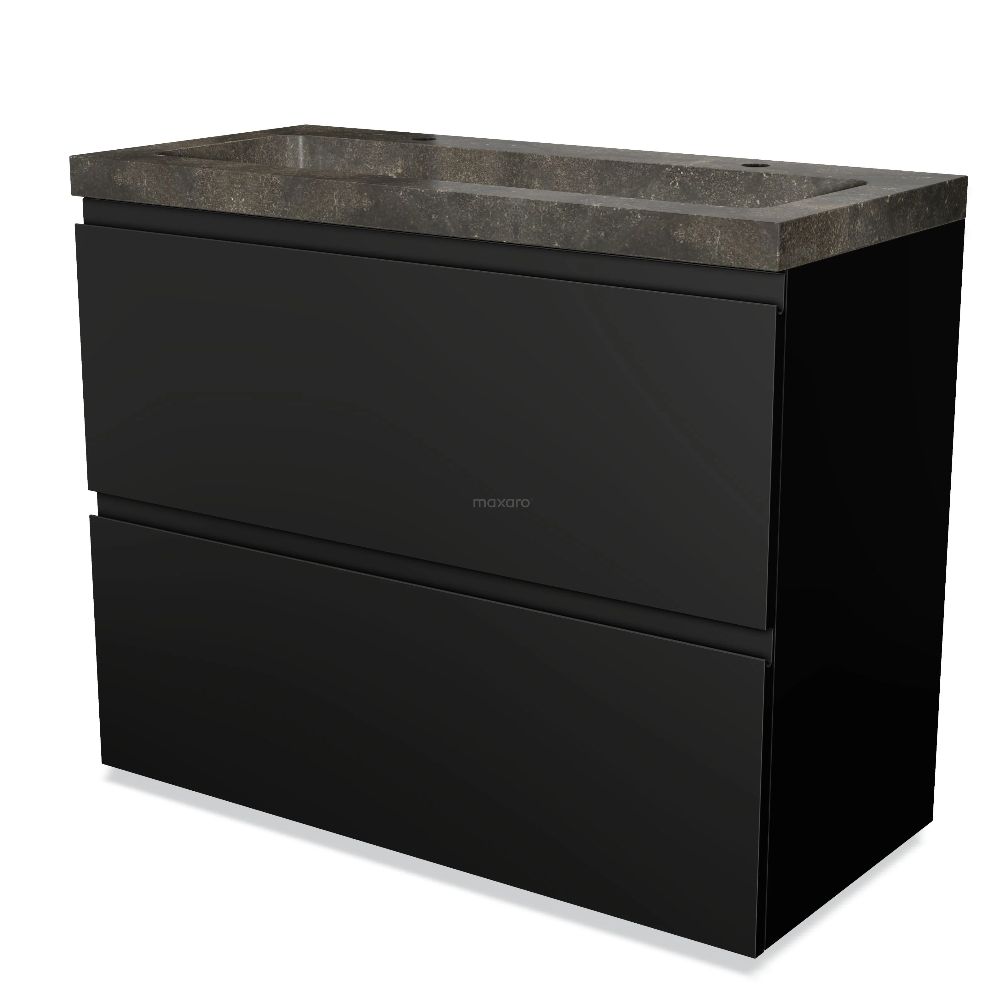 Modulo Waschtische | 100 cm Matt Schwarz Grifflos front Naturstein 2 hohe Schubladen übereinanderliegend