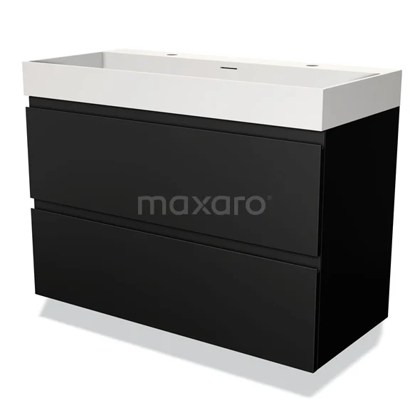 Modulo Waschtische | 100 cm Matt Schwarz Grifflos front Solid Surface 2 übereinanderliegende Schubladen