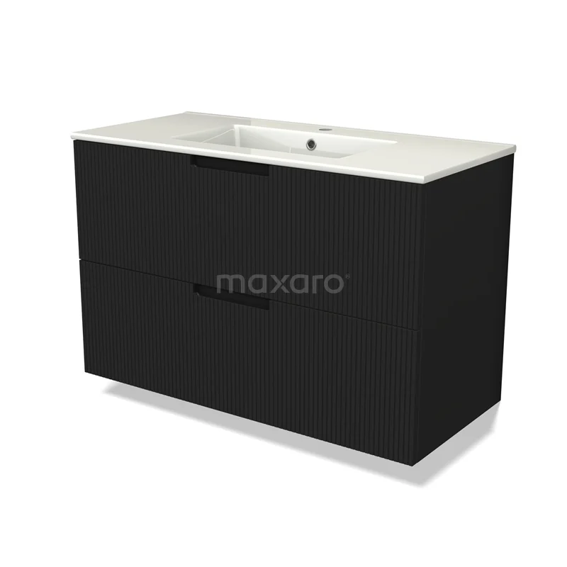 Modulo Waschtische | 100 cm Matt Schwarz Linie front Keramik 2 übereinanderliegende Schubladen