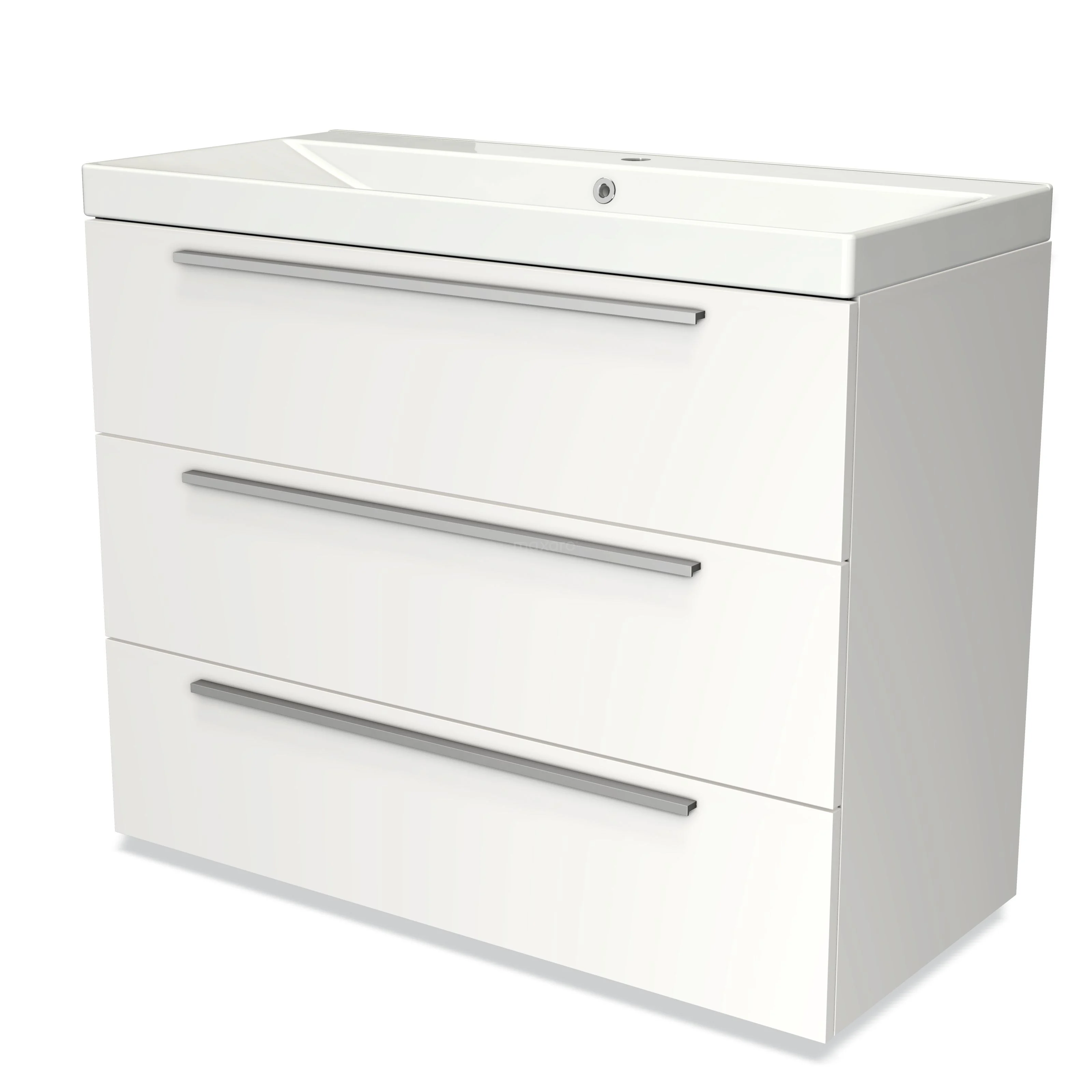 Modulo Waschtische | 100 cm Matt Weiß Flach front Keramik 3 Schubladen