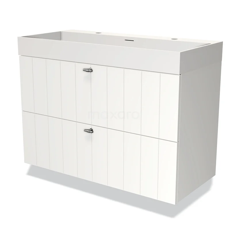 Modulo Waschtische | 100 cm Matt Weiß Lamelle front Solid Surface 2 übereinanderliegende Schubladen